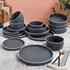 Bring the clean lines of contemporary modern designs to the dinner table with this Lesley Dinnerware Set. This durable stoneware set is designed with a modern lip edge preventing food and sauces from falling off your plate. The soft matte glaze in a deep blue beautifully contrasts the stark white edge. Plates are large and flat, creating the perfect canvas for gorgeous plating designs. This set also comes with deep walled cereal and dinner bowls.